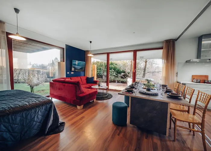 O Design Architect Villa With 2 Apartments Praga de 240 m² está localizado no bairro Prague 5 em Praga a 4.3 km de Břevnovský Klášter e oferece jacuzzi. Este apartamento de 2 quartos também tem terraço com vista para o jardim.